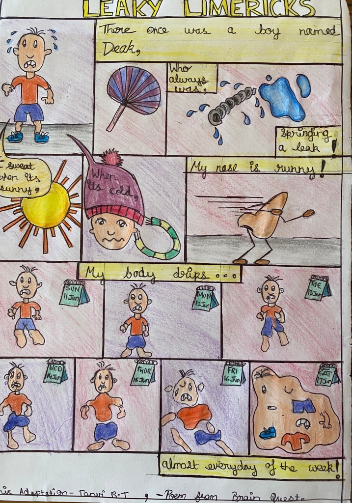 This is a comic adaptation done by me. The limerick is a poem from the Brain Quest. This is a type of art which amyone with a bit of imagination and creativity can do… as for me , even I too have done it only for fun! The best part about this type of art is that it creates visual effects for any poem which makes the poem reach to the reader very easily and it also it quite entertaining!!!