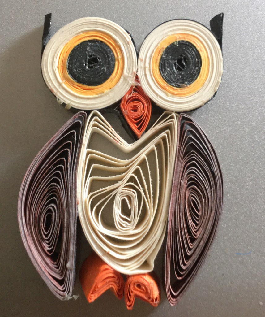 This is a owl made with basic paper quilling. Can be used for things such a necklace pendant or a pair of earrings (after making two identical owls and attaching the hooks). The best part of this paper quilling art owl is that it is easy to make, takes very little time and materials but looks really pretty once completed!!!